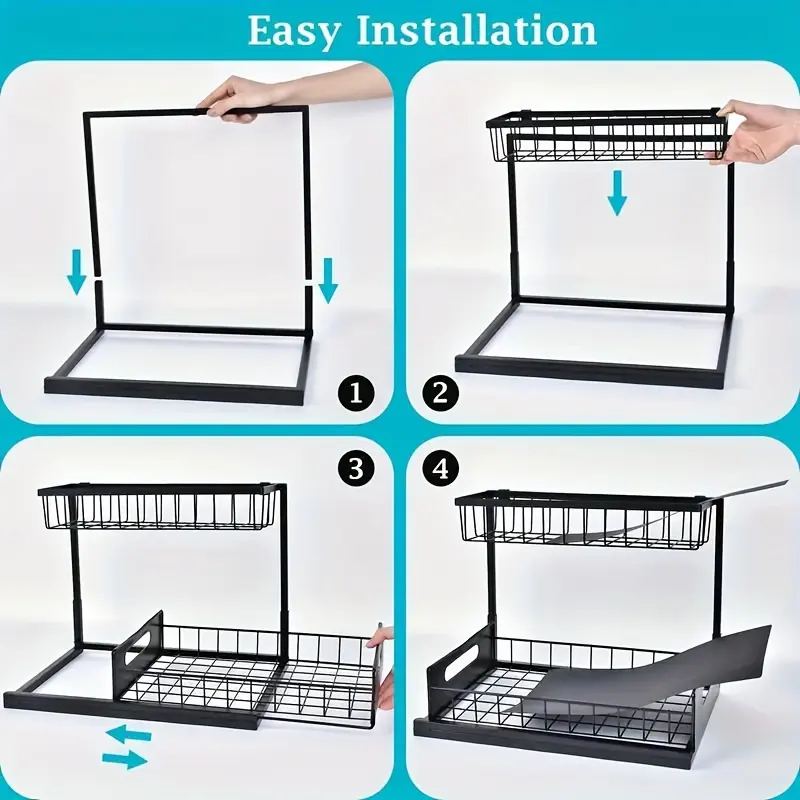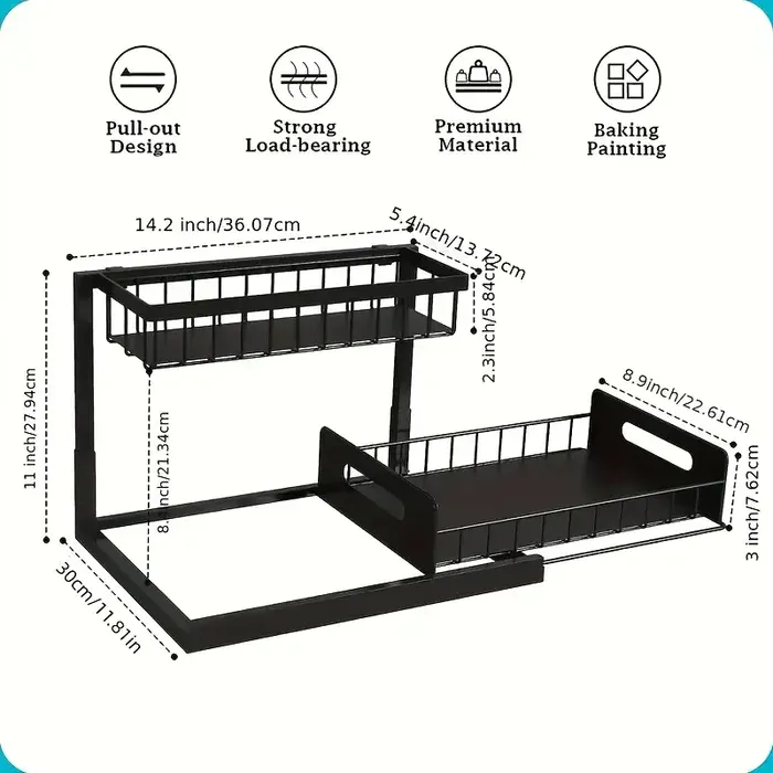 2-Tier Slide-Out Under-Sink Organizer for Storage & Organization with Pull-Out Rack Design