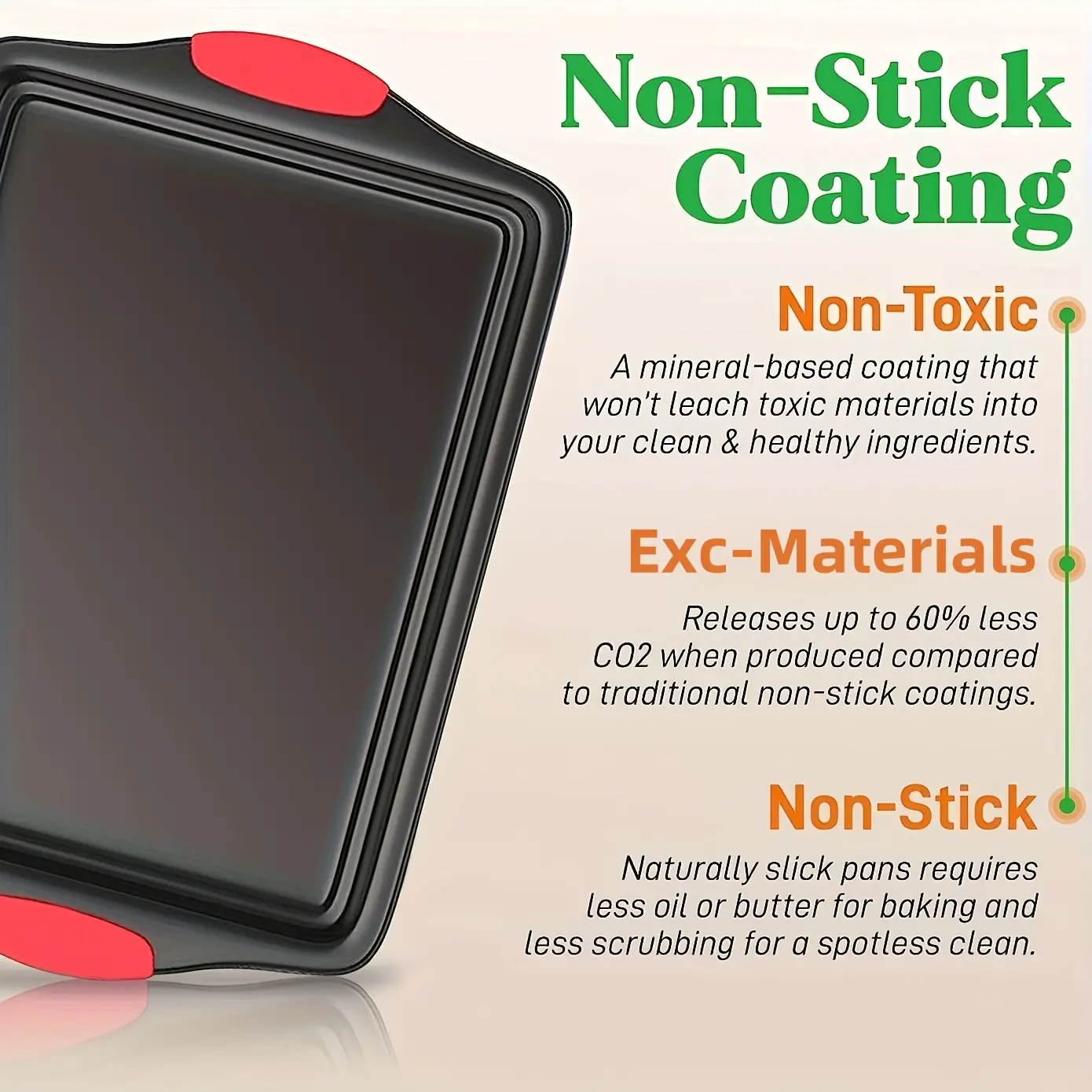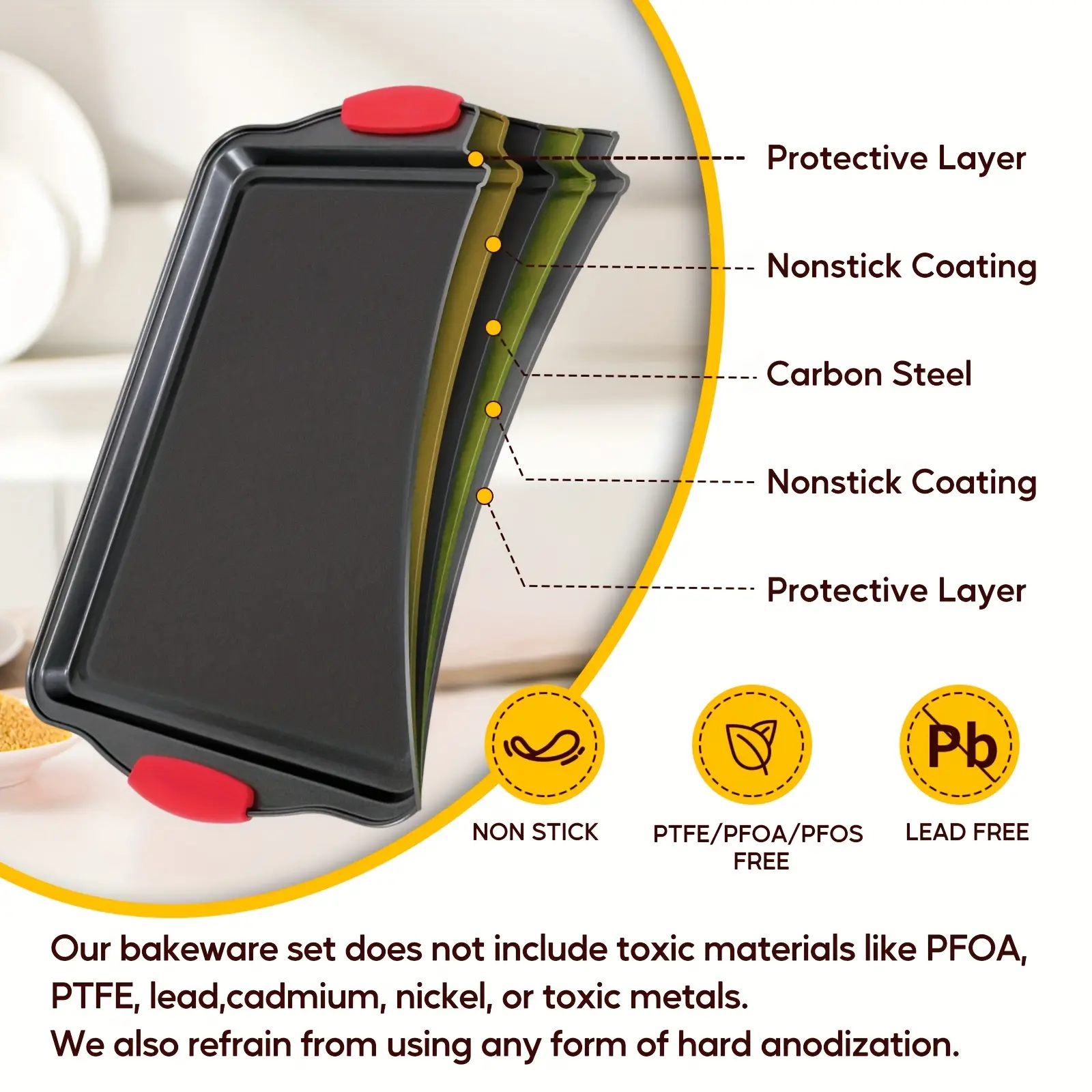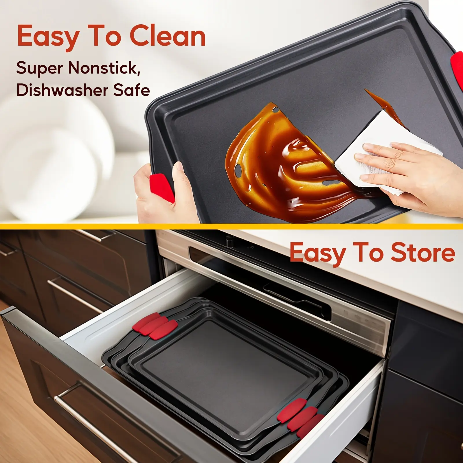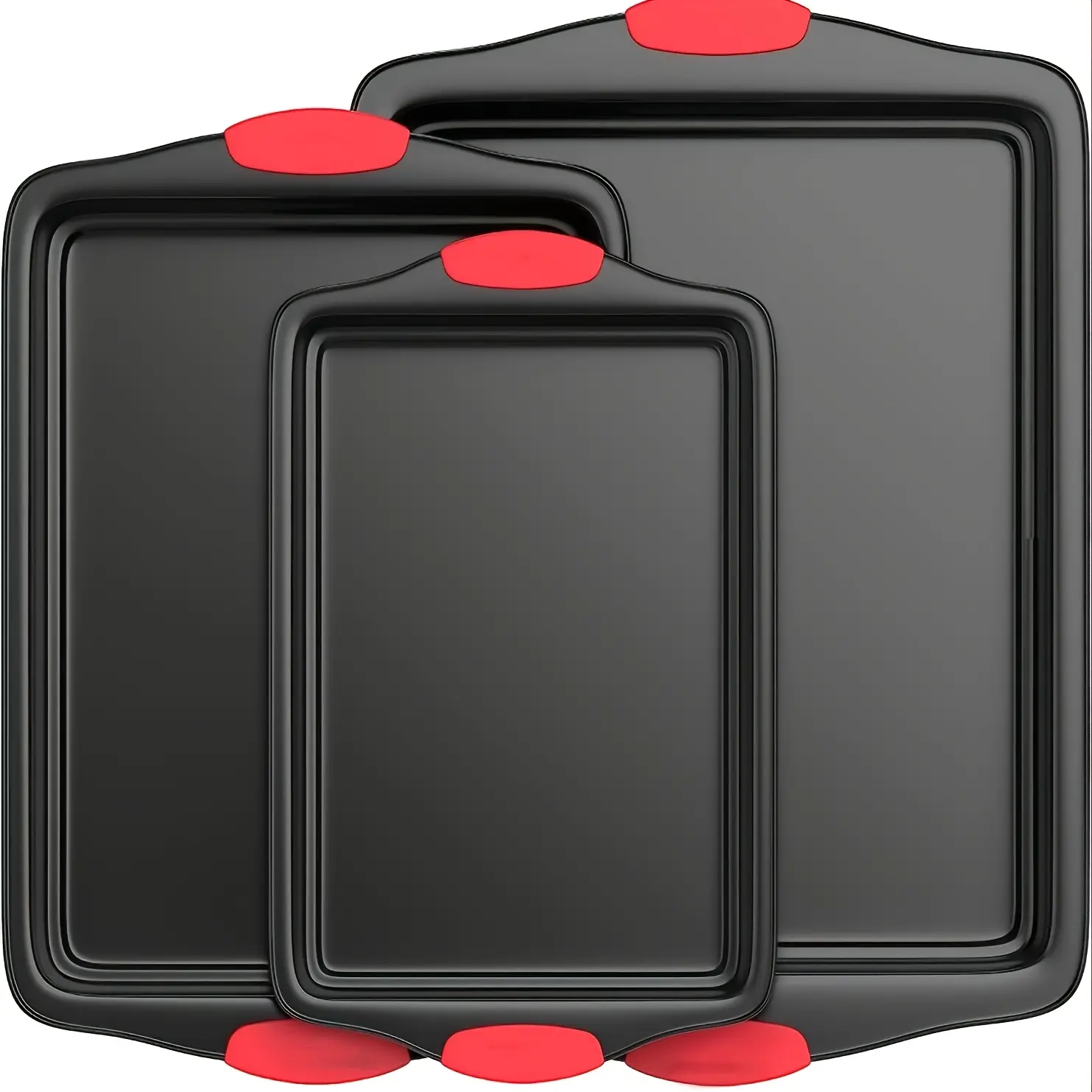 3pcs Carbon Steel Nonstick Baking Pan for Baking & Roasting with Silicone Handle Grip