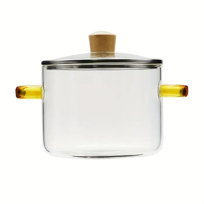 Borosilicate Glass Cooking Pot for Simmering & Serving with Yellow Handle