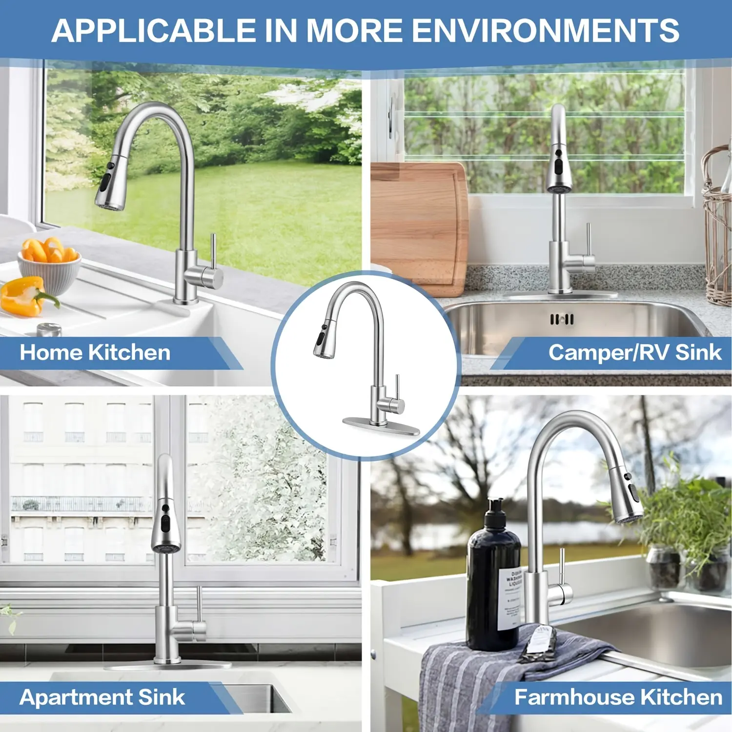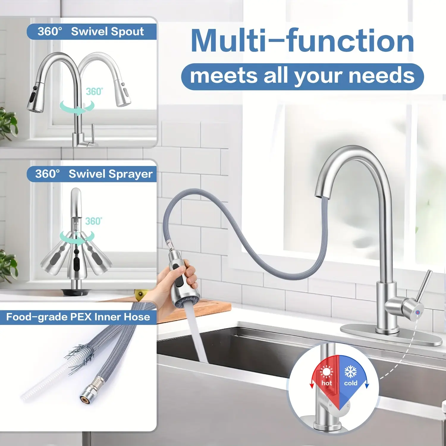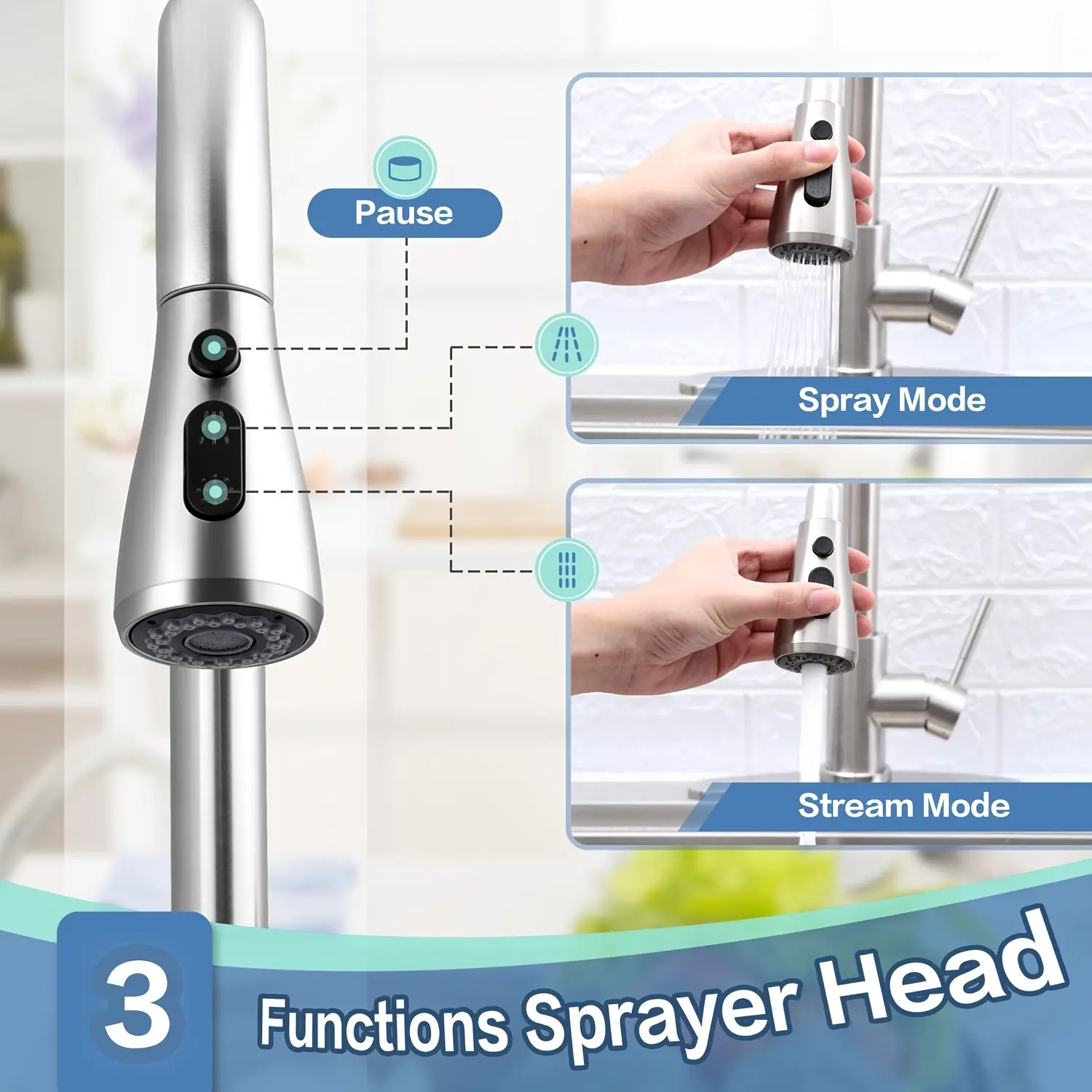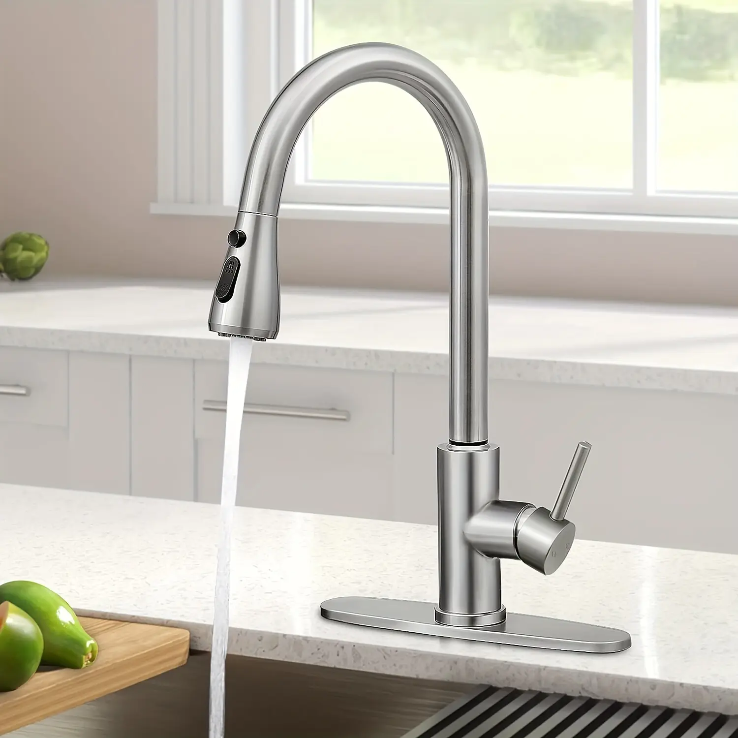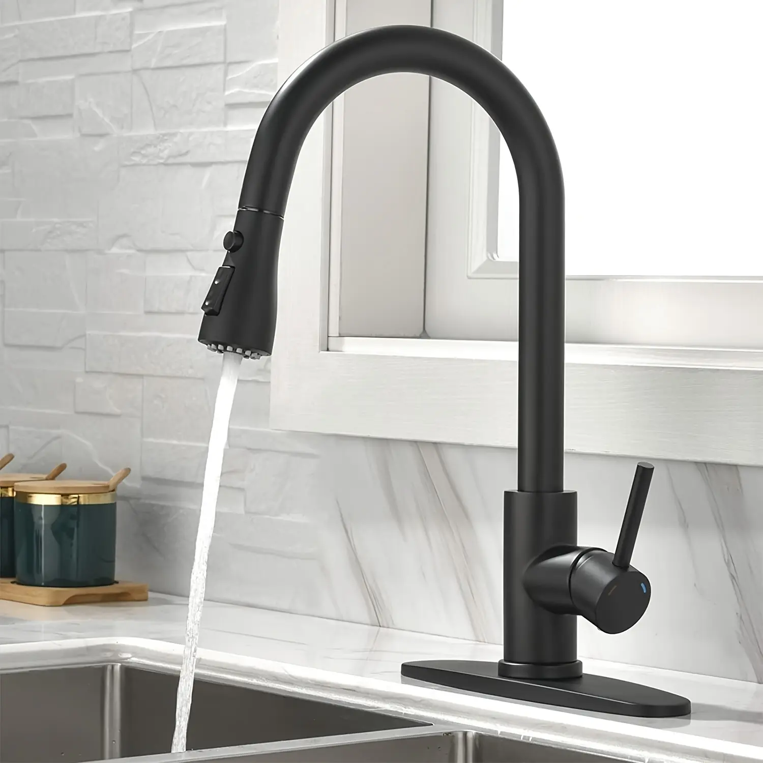 - Pull-Down Spray Head: The pull-down sprayer provides controlled water direction for rinsing and general sink tasks.