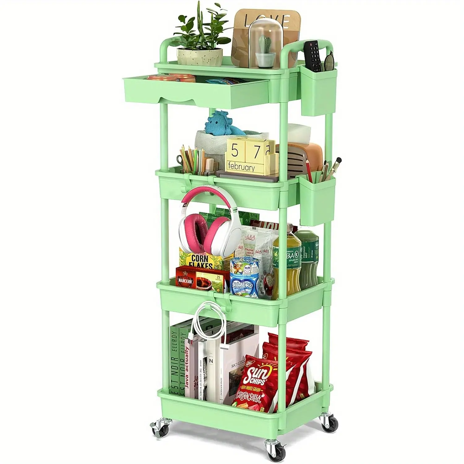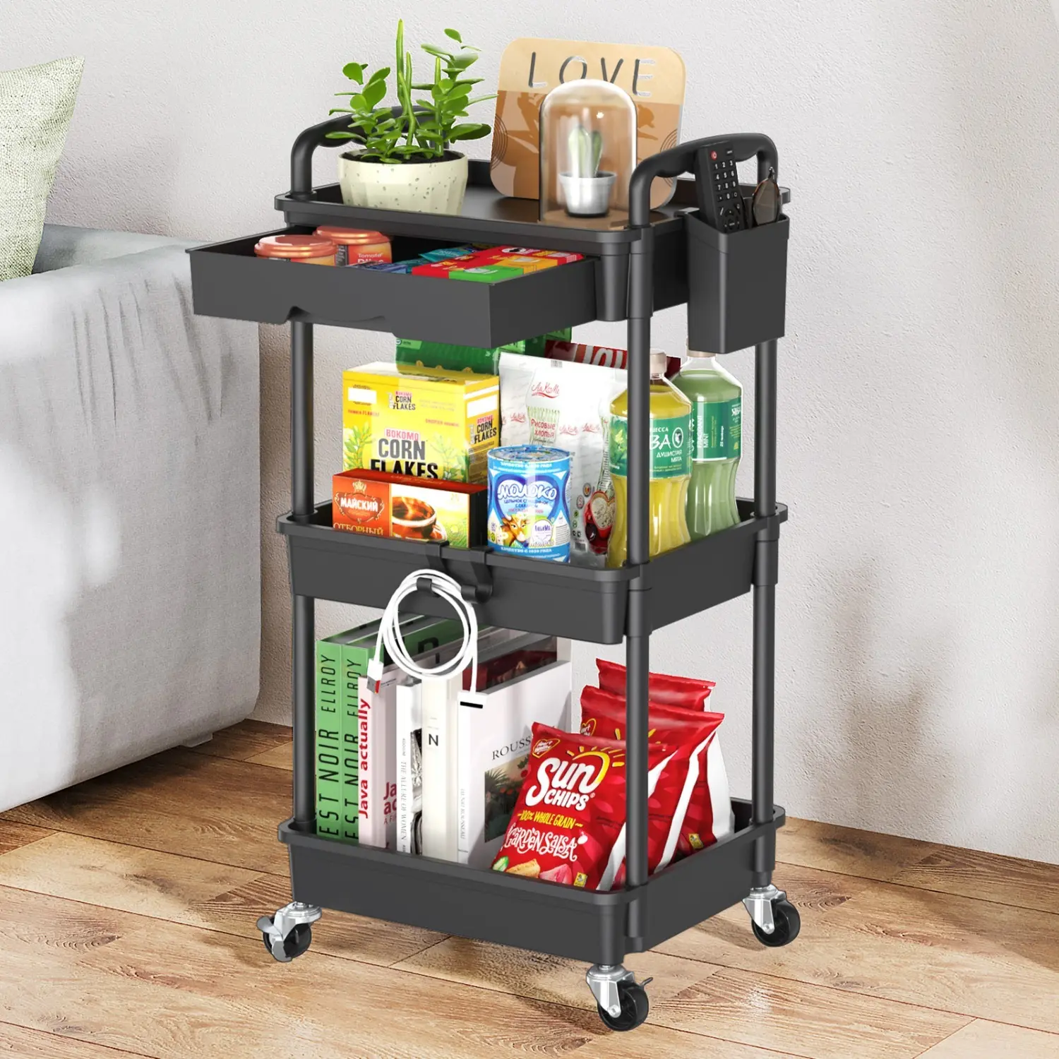 Rolling Storage Cart for Organizing Supplies with 3 or 4-Tier Design and Lockable Wheels